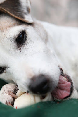 My little Jack Russell showed right from the start that she was going to be a guarder. At 12 weeks of age she gave me quite the display of her tiny teeth when I tried to move her rawhide. That was nearly 14 years ago; and since then we have never had rawhides in the house. Reason one was Jessie; and two is that they are not good for dogs. And three is that I know of two dogs who actually choked to death on them. So with the rawhides gone we didn't have any problems; solved until the entry of raw bones. There we have a slight issue; but that has been solved as well which I will explain a little later.